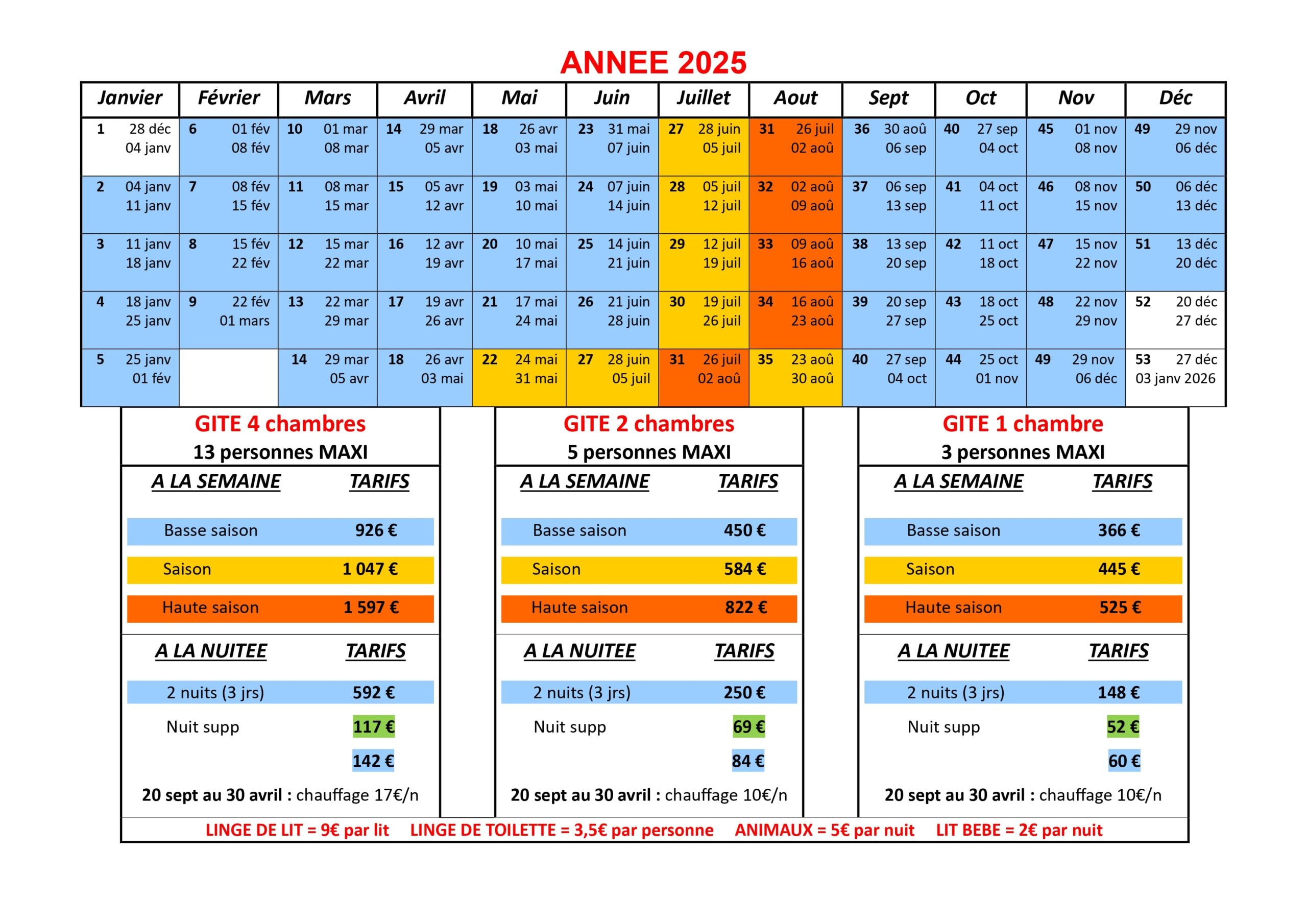 En saison et haute saison : uniquement à la semaine du samedi au samedi